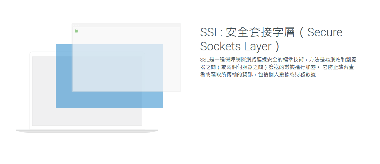 SSL 安全套接字層的縮寫。Web瀏覽器和伺服器的協議,能夠透過網路發送的數據進行身份驗證,加密和解密。 |